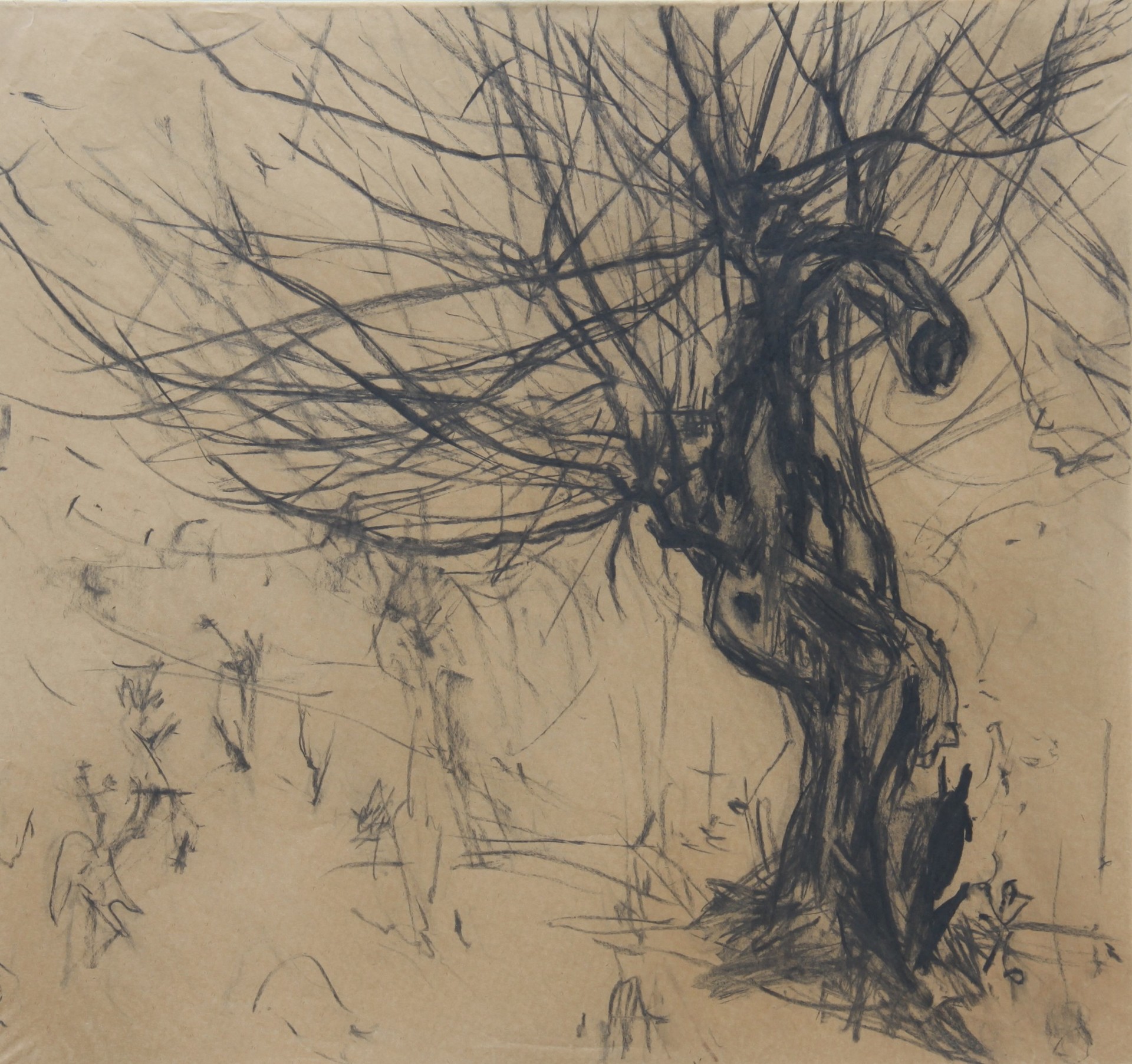 Since Stojan Grauf's painterly beginnings in the 1980s, his creative efforts have been closely linked to nature and the natural environment. In the artist's work, nature is not just an inspiration, a muse, or an occasional companion, but an organic part of the creative process and an inseparable part of drawings, paintings, and interventions that emerge from his hands: the painter boils the charcoal which he uses for drawing by himself; the stretchers of his paintings are made of tree branches; he often uses paints and natural pigments gathered on-site; his exhibitions regularly include tree branches, pebble stones, sand, etc.