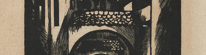 Woodcut depictions of Maribor take us along the dark and narrow streets leading from the city’s main square and the Koroška Street towards the Drava river. The town, as it was in the 17th and 18th centuries, comes alive before us. The thick walls, skewed under the weight of time, are awoken in sharp interlacing shadows, where darkness and light meet, and the streets swirl in a mysterious nocturnal dance. The artist closely followed the actual shapes of the streets and buildings; nevertheless, the dark atmosphere of the streets leaning towards the river and the clustered buildings that obscure the memories of distant lives, of tradesmen, craftsmen, Jews, brings them - contrary to Stiplovšek’s paintings – closer to the spirit of the now waning expressionism.