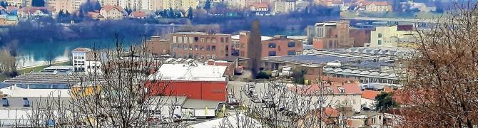 photo 9: View of the Hutter factory or MTT from the Northeast, photo from 2016 (photographer: Domen Kodrič). In the central part is the boiler plant. The 70 m high chimney was removed in 1992.