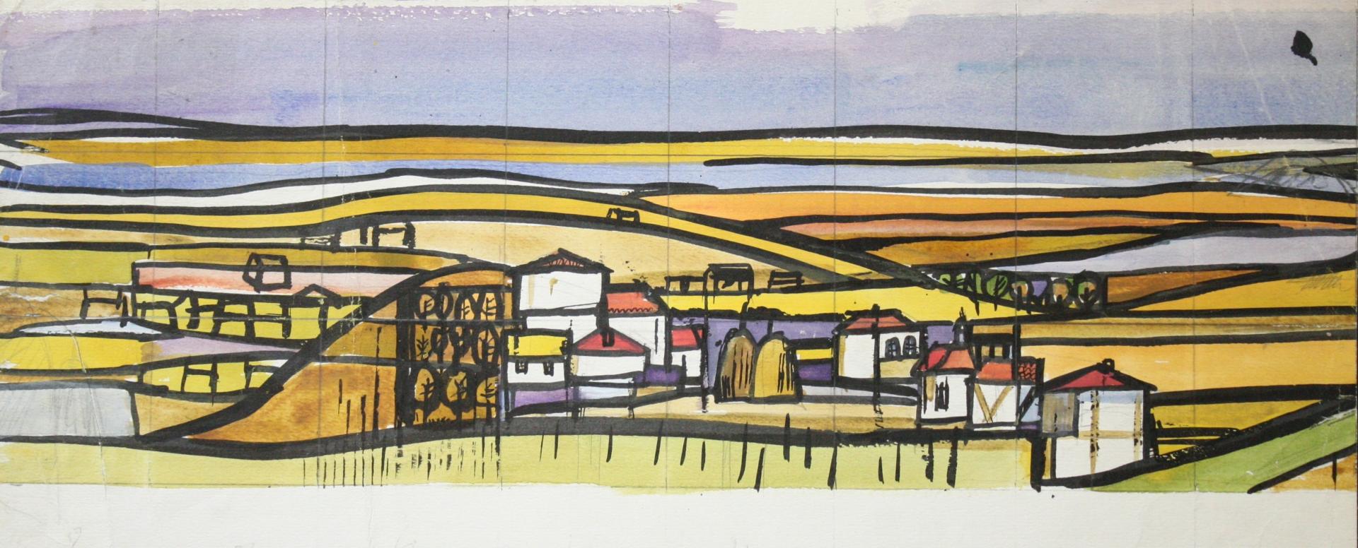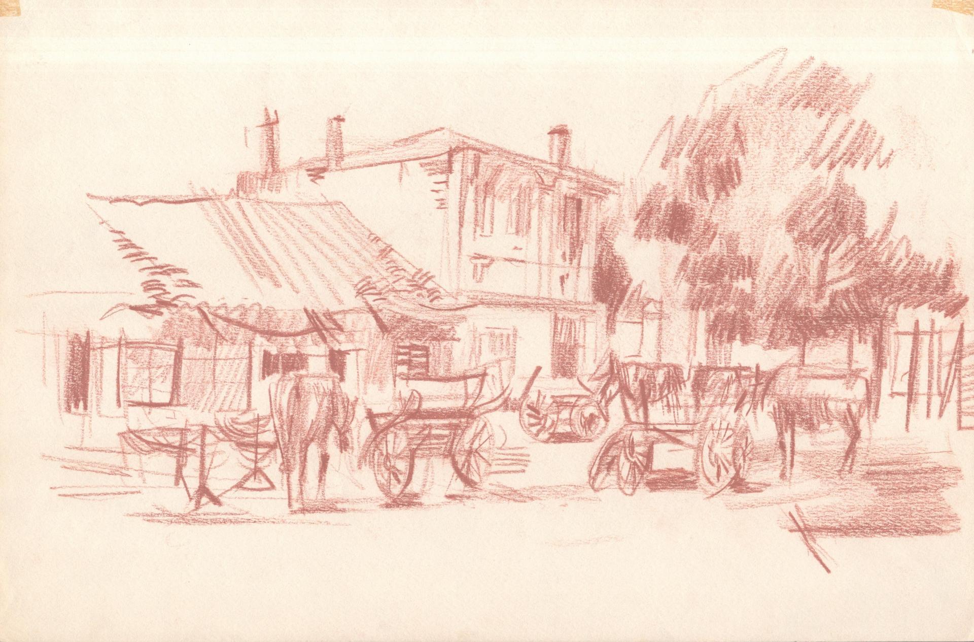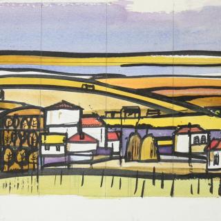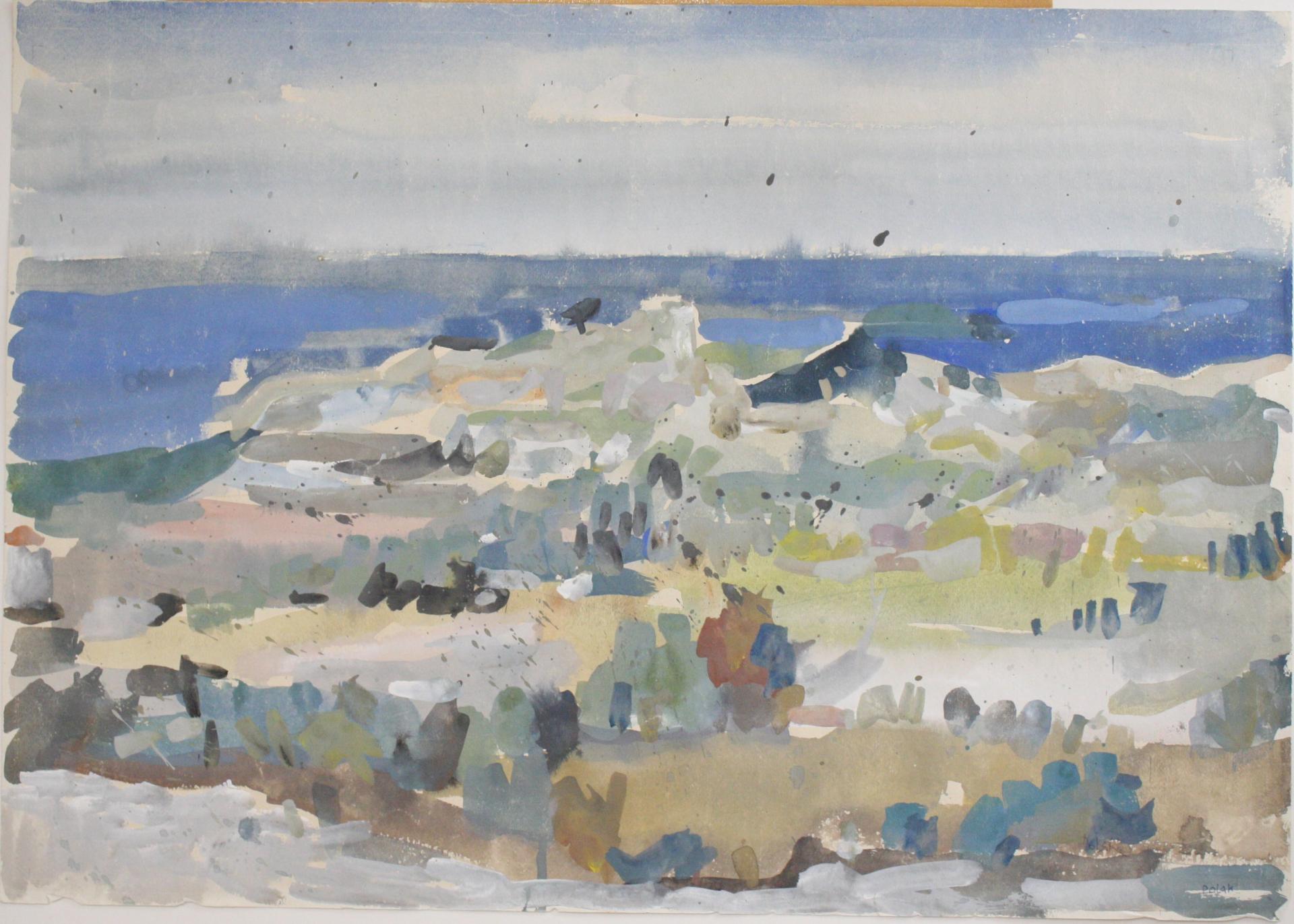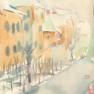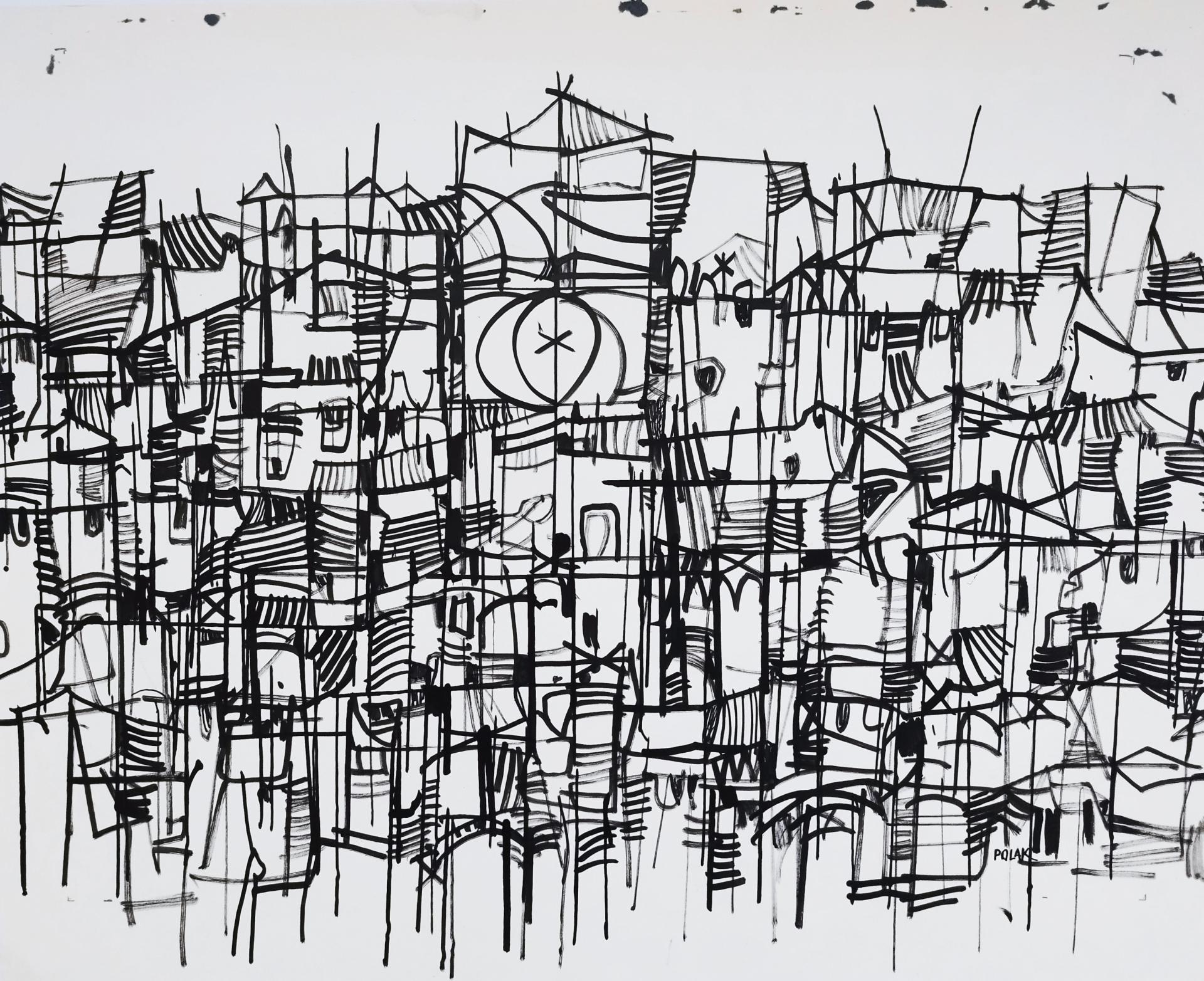 Although Polak was primarily a painter, his drawings reveal him as an exceptional draftsman, with virtuoso technique that adapts masterfully to different subjects and artistic expression across various media (pencil, charcoal, chalk, ink, marker, etc.). Many works on paper were created during artistic colonies, holidays, or excursions, where the artist tirelessly sketched landscapes, cityscapes, and occasionally figures. While some motifs appear exclusively in his drawings, others show connections to his paintings, serving as stylistic exercises for his painted works. For example, the Composition cycle represents tireless variations of compositional and color relationships on the theme of the city - a favorite subject of the artist.