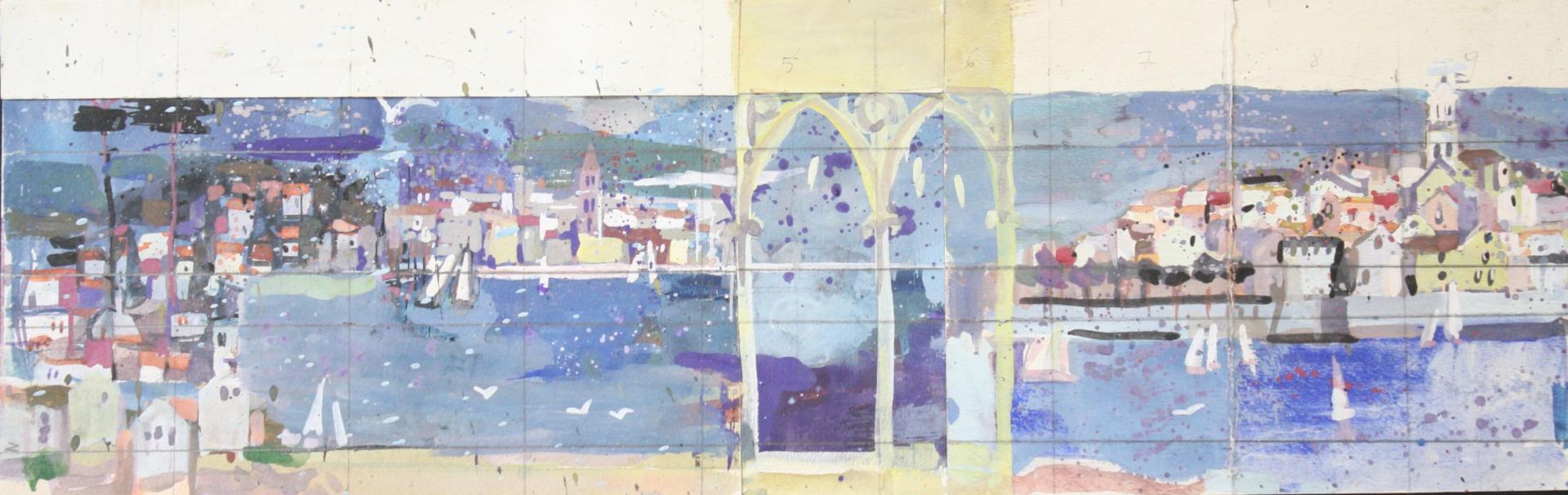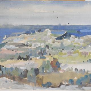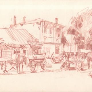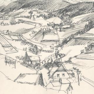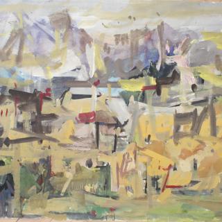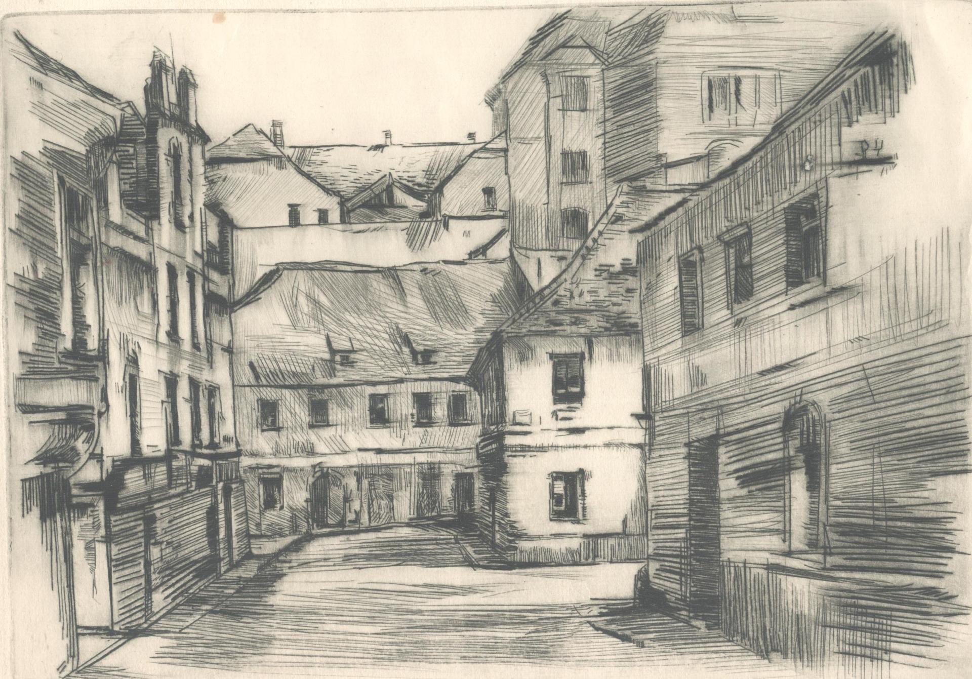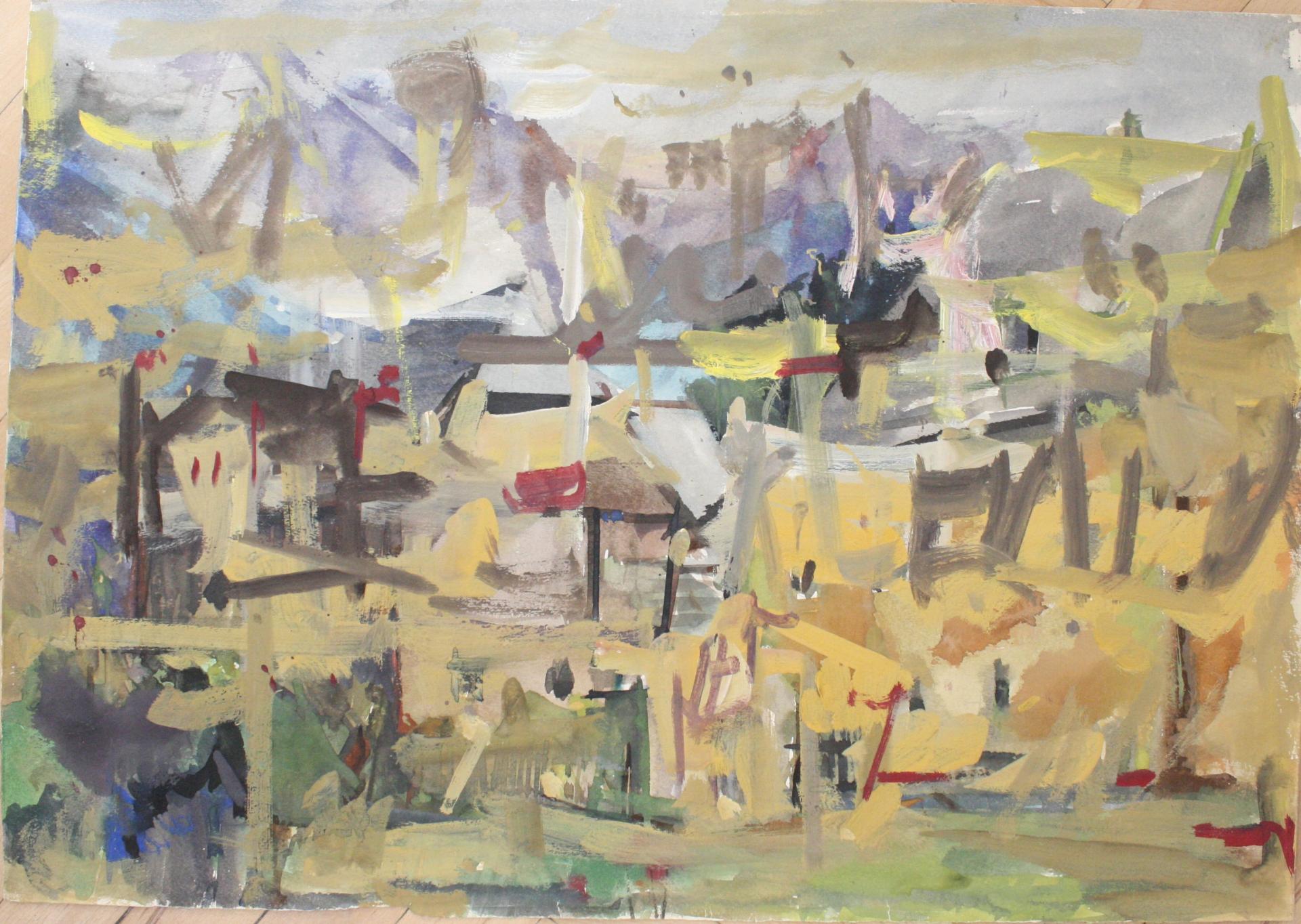 Although Polak was primarily a painter, his drawings reveal him as an exceptional draftsman, with virtuoso technique that adapts masterfully to different subjects and artistic expression across various media (pencil, charcoal, chalk, ink, marker, etc.). Many works on paper were created during artistic colonies, holidays, or excursions, where the artist tirelessly sketched landscapes, cityscapes, and occasionally figures. While some motifs appear exclusively in his drawings, others show connections to his paintings, serving as stylistic exercises for his painted works. For example, the Composition cycle represents tireless variations of compositional and color relationships on the theme of the city - a favorite subject of the artist.