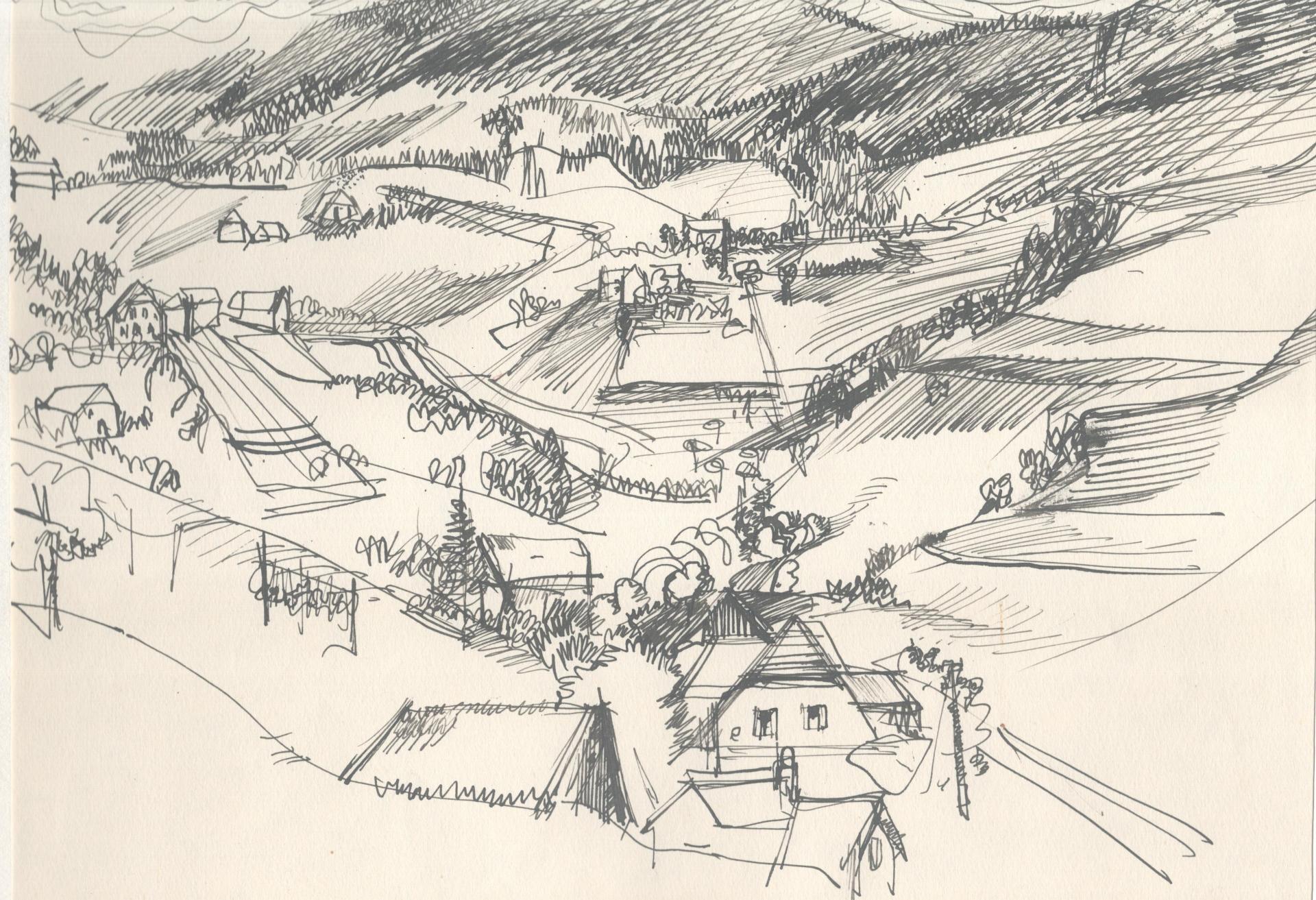 The donated material includes drawings, watercolors, and prints by Oton Polak created between 1939 and around 1995. As a young artist, already during his undergraduate and postgraduate studies under Professor Božidar Jakac, Polak produced a cycle of 30 etchings on the theme of Old Maribor, for which he received the student Prešeren Award in 1953. The exhibition features selected prints from this cycle, alongside drawings and watercolors of Maribor, study drawings of nudes, landscapes executed in gouache and tempera, the drawing cycle titled Macedonia, and the abstract cycle Composition.