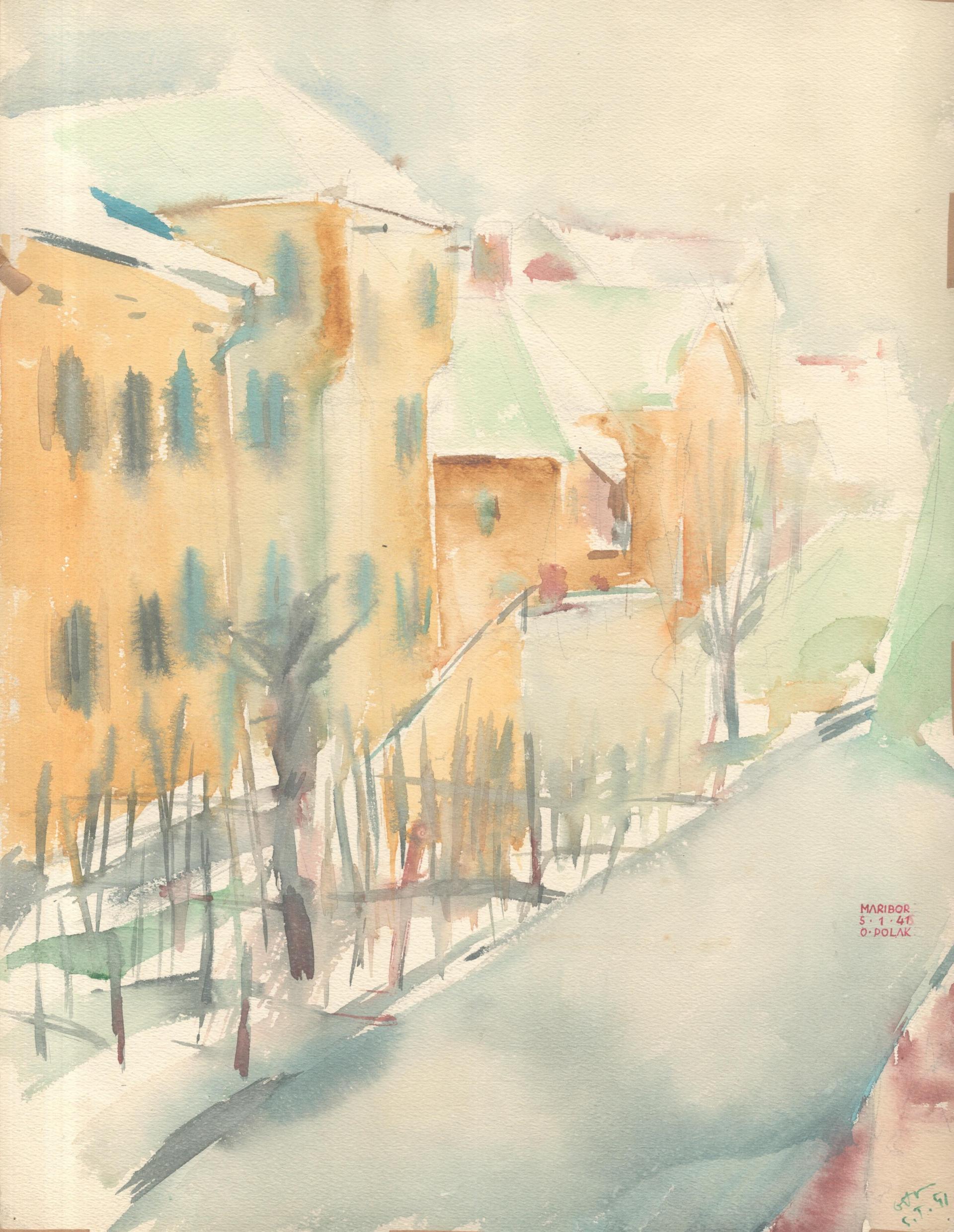 Oton Polak (1917–2011) studied painting at the Academy of Fine Arts in Zagreb under Prof. Krsto Hagedušić and Prof. Omer Mujadić from 1940 to 1941. He continued his studies at the newly established Academy of Fine Arts in Ljubljana as part of its first generation of students. He graduated under Gojmir Anton Kos and pursued postgraduate studies with Prof. Gabrijel Stupica (1948–1950), completing a painting specialization, and with Prof. Božidar Jakac (1950–1952), completing a graphics specialization. From 1952 to 1975, he worked as an art teacher- first at Janko Padežnik Primary School in Studenci, and later at the Secondary School of Floristry in Maribor. Polak participated in numerous painting colonies, including Prilep in Macedonia (1963, 1964), Škofja Loka (1967), Ravne na Koroškem (1970, 1971), Ptuj (1969, 1970, 1978), Novo mesto (1976, 1977), and Gorenjske Selce (1978). Among his awards are the Prešeren Award for the cycle of prints Old Maribor (1953), the Glazer Award for lifetime achievement (1988), and the award from the Association of Slovenian Fine Artists (2006). UGM organized a retrospective exhibition for the artist’s 70th birthday, and Polak also exhibited at the gallery on the occasion of his 90th birthday.