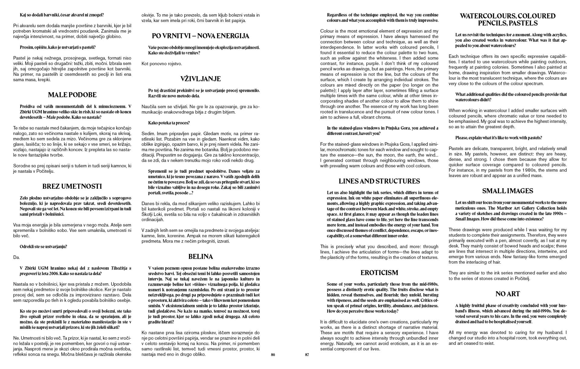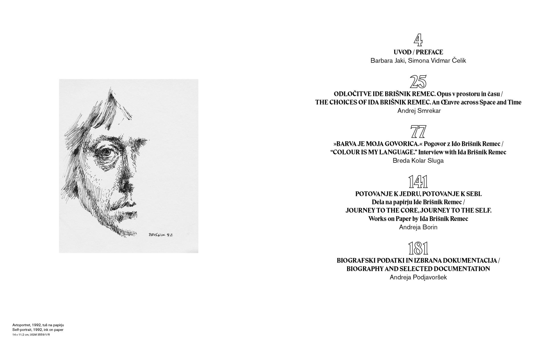 Monografija v uredništvu Brede Kolar Sluga prinaša strokovna prispevka dr. Andreja Smrekarja, ki osvetljuje umetničin ustvarjalni razvoj v širšem kontekstu slovenske in evropske umetnosti, in Andreje Borin, ki se osredotoča na raznolik opus avtoričinih del na papirju, ter poglobljen pogovor med Bredo Kolar Sluga in Ido Brišnik Remec z redkim uvidom v avtoričina intimna razmišljanja in življenjske mejnike.